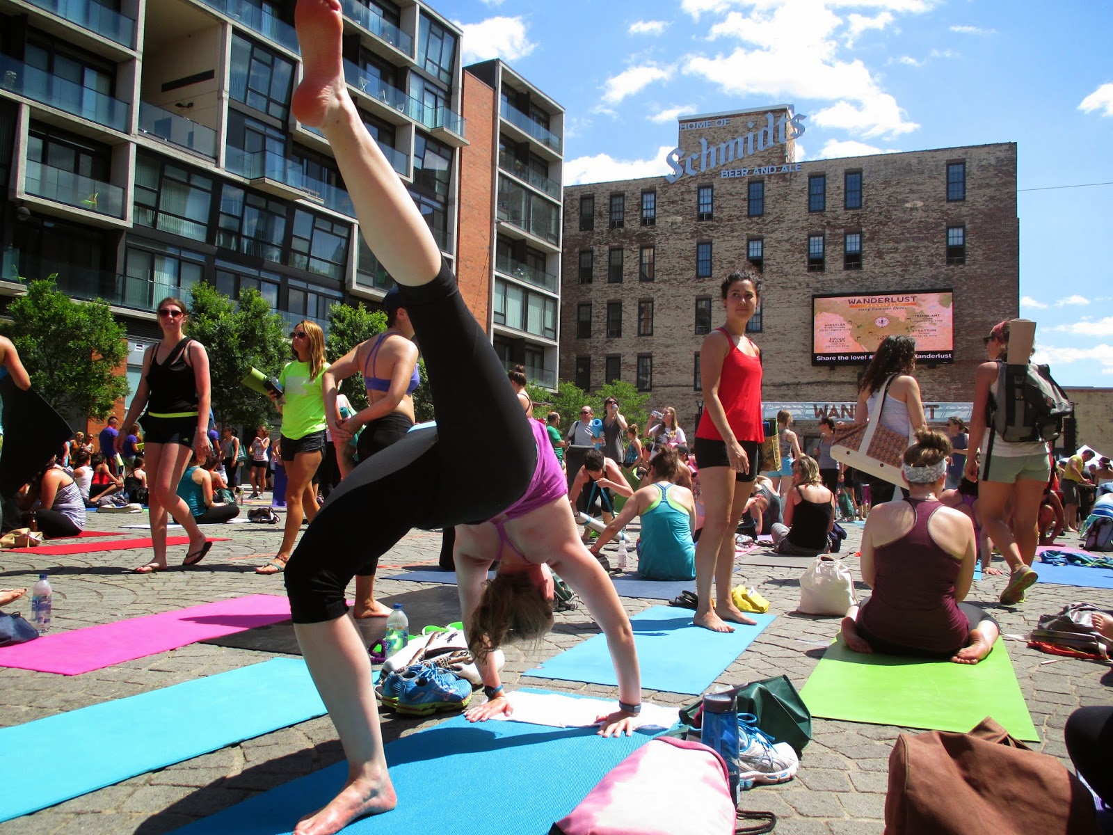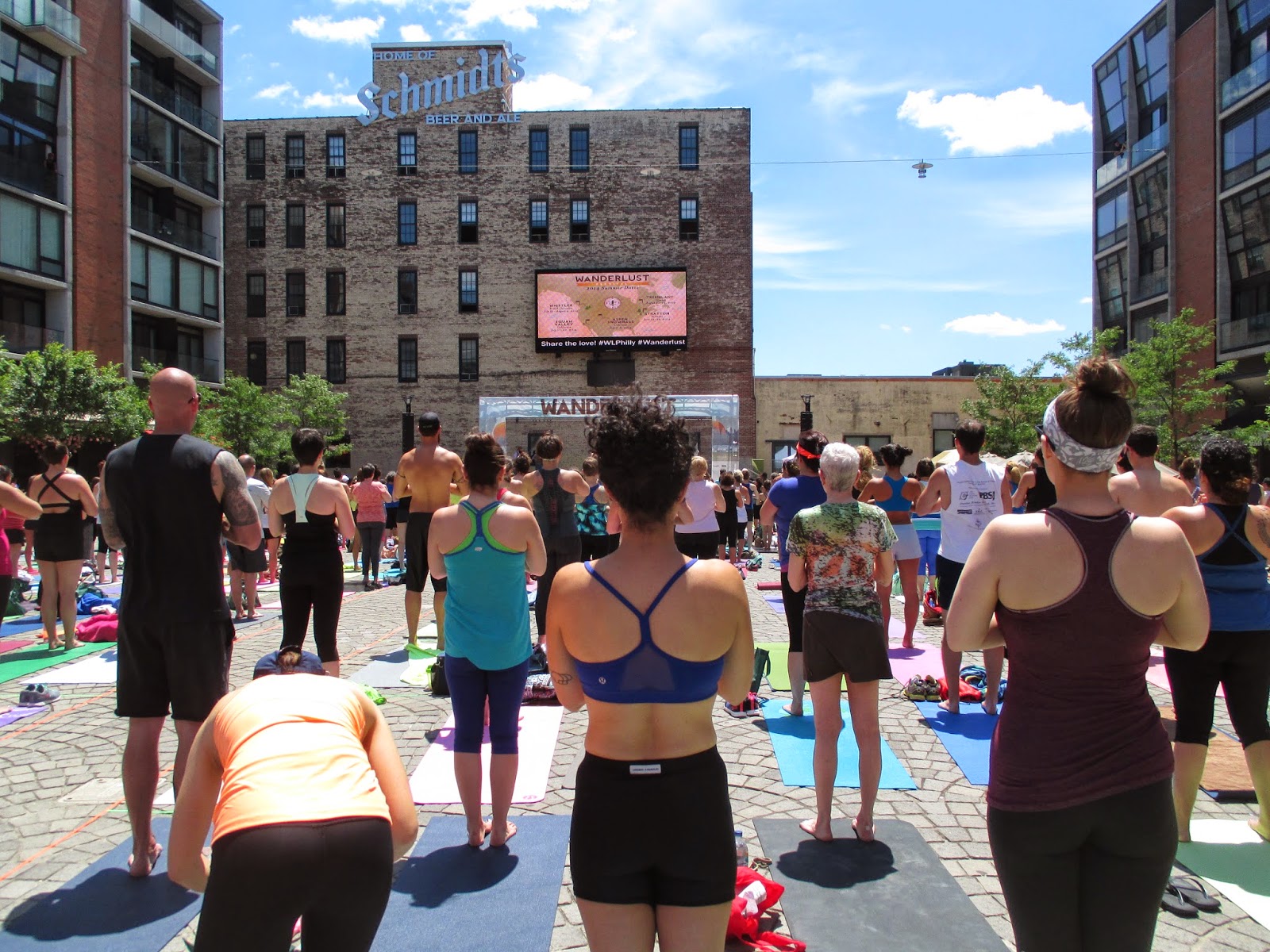 On Saturday I slept in, made breakfast, did some laundry and got ready to go to Wanderlust Festival in the city. Wanderlust was a big free yoga event from 12-6pm. They had at least 4 yoga classes throughout the day with different teachers. You had to sign up for one of the classes to allow for space for other people throughout the day. I signed up for the 1:30 class and took two trains down to the city. After getting off my second train, I met three girls headed to the yoga festival as well. It was great to get a chance to meet a few people, seeing as I am still new to Philadelphia and don’t really know anyone.